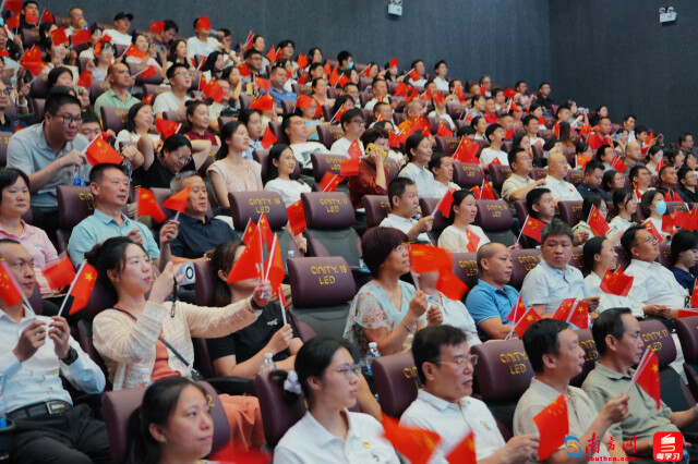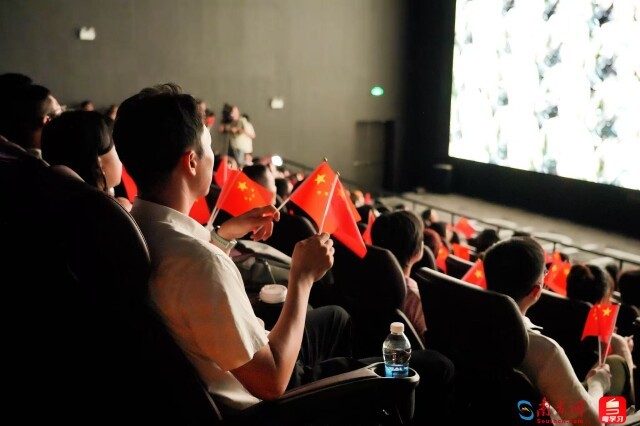 现场氛围热烈,掌声多次自发响起。当习近平总书记重要讲话结束,“中华民族伟大复兴势不可挡!人类和平与发展的崇高事业必将胜利!”的声音回荡在影院,场内掌声雷动,久久不息。